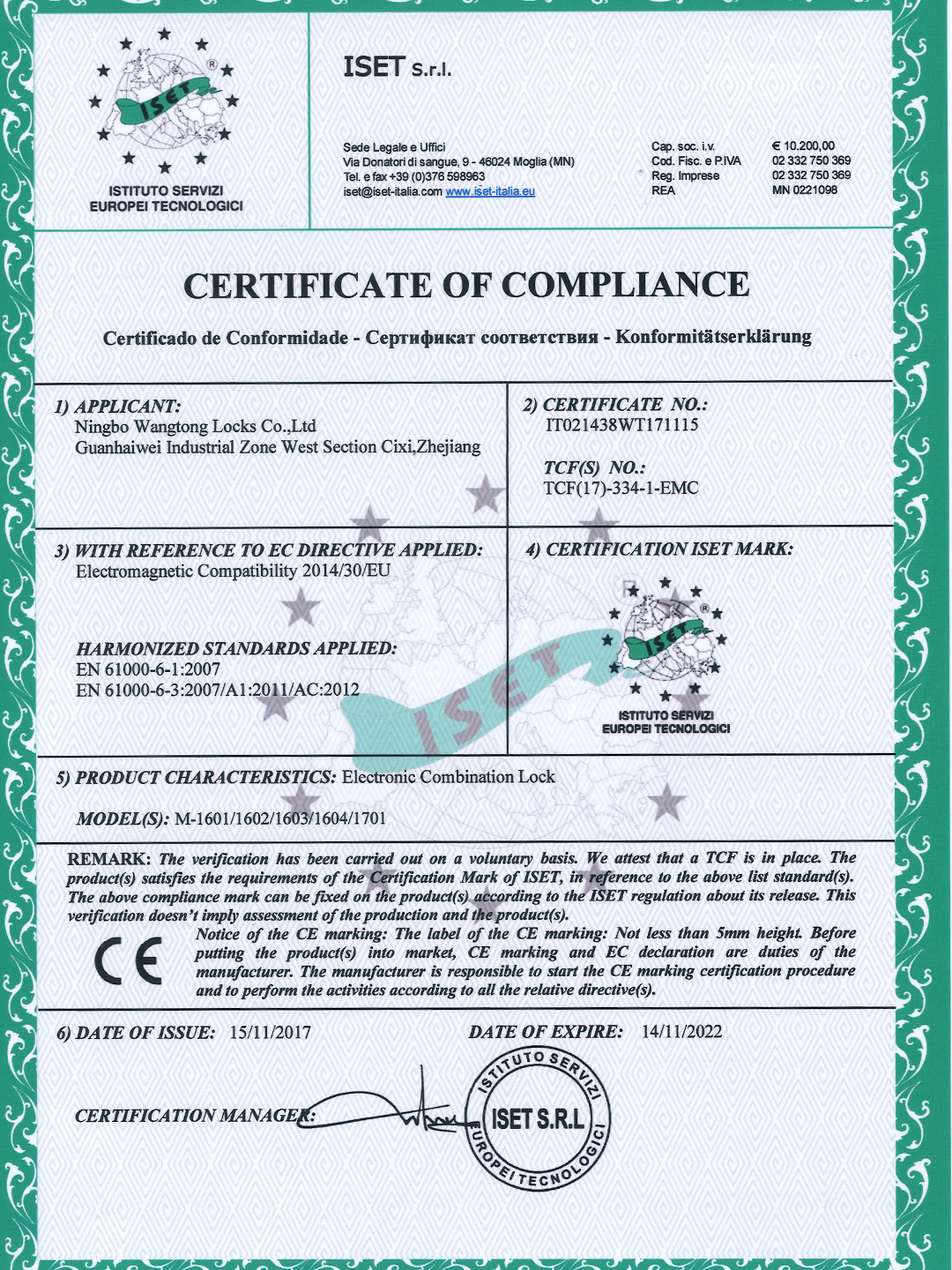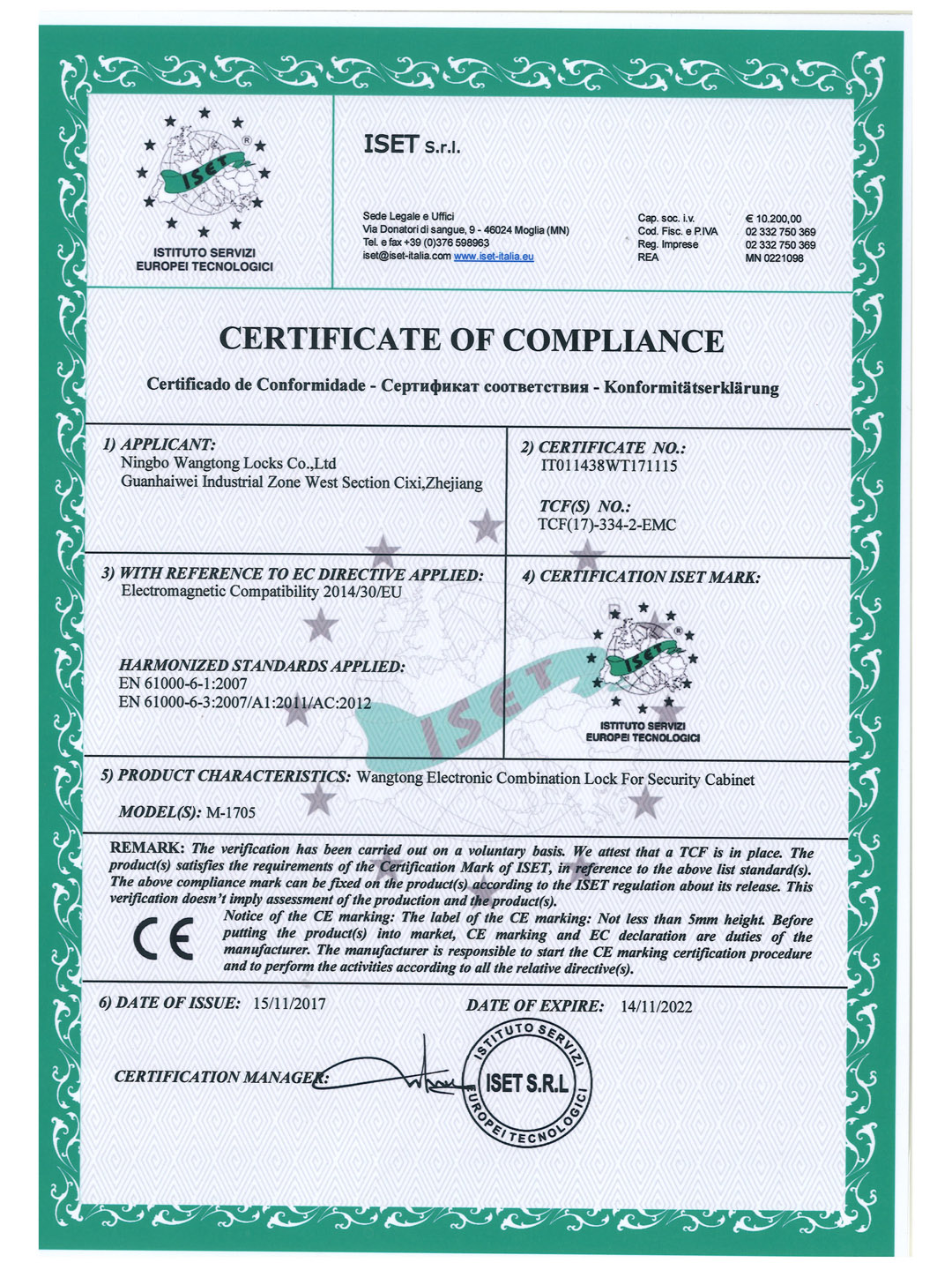 M-1705CE认证证书